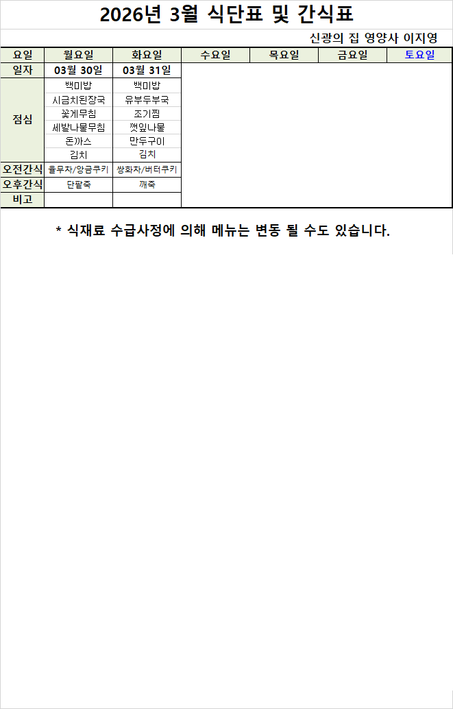 2026³â 3¿ù ½Ä´Ü ¹× °£½ÄÇ¥