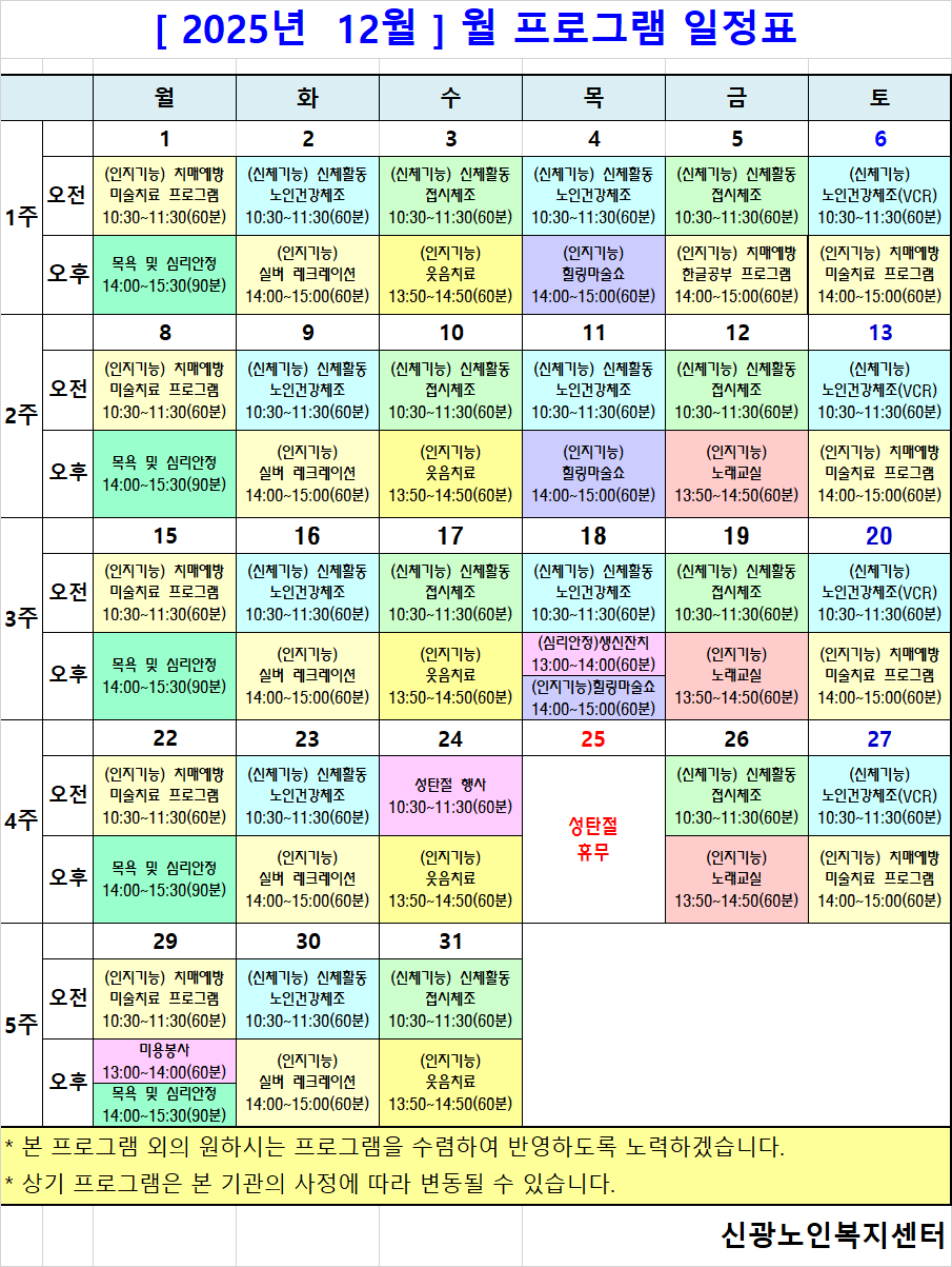 2025³â 12¿ù ÇÁ·Î±×·¥ ÀÏÁ¤Ç¥