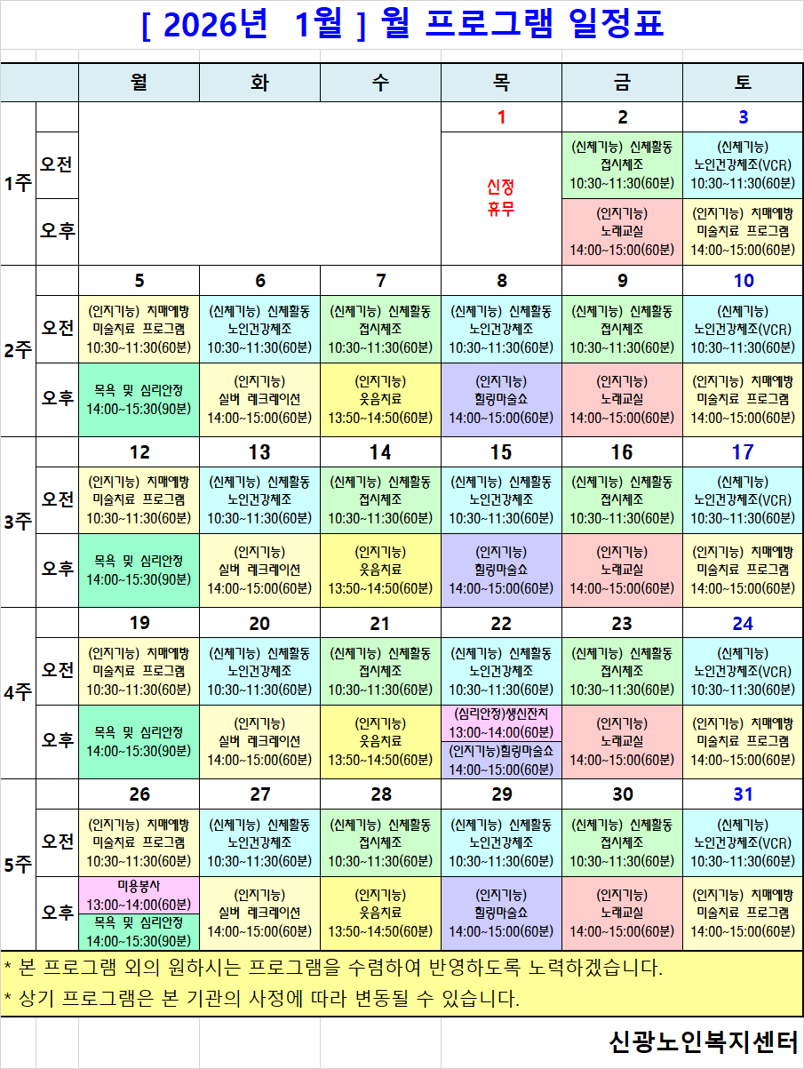 2026³â 1¿ù ÇÁ·Î±×·¥ ÀÏÁ¤Ç¥