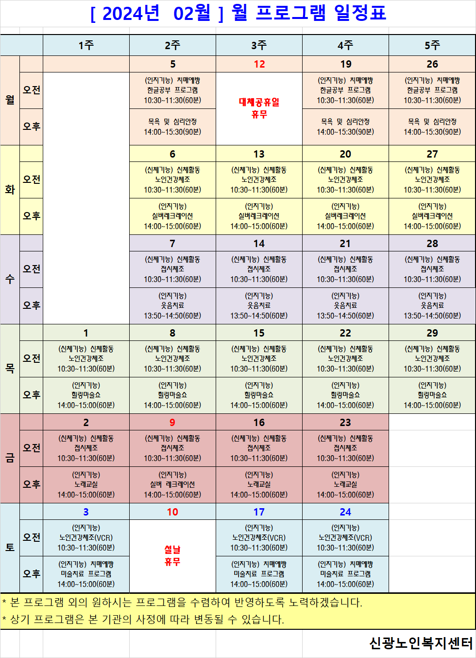 2024³â 2¿ù ÇÁ·Î±×·¥ ÀÏÁ¤Ç¥