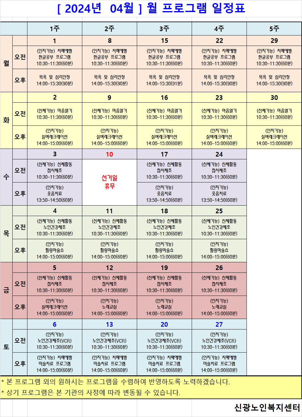 2024³â 4¿ù ÇÁ·Î±×·¥ ÀÏÁ¤Ç¥