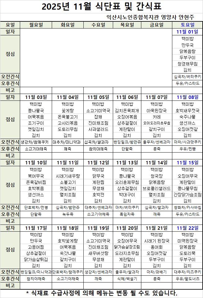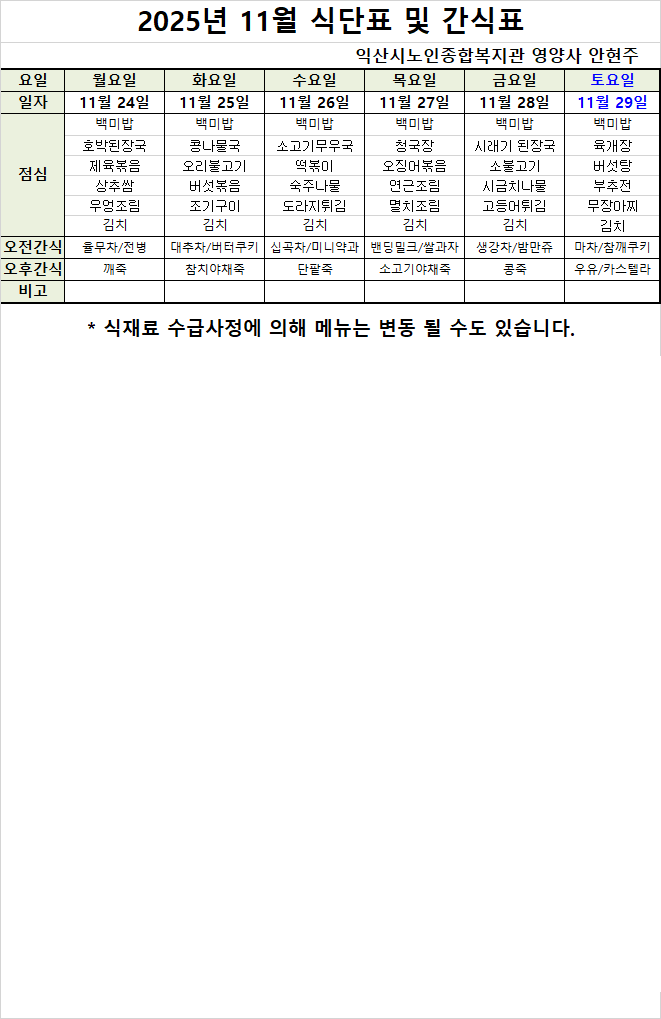 2025³â 11¿ù ½Ä´Ü ¹× °£½ÄÇ¥