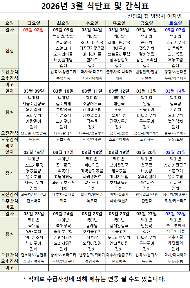 2026³â 3¿ù ½Ä´Ü ¹× °£½ÄÇ¥