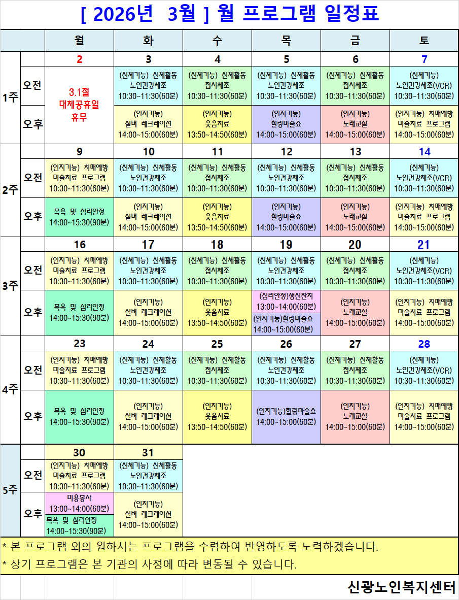 2026³â 3¿ù ÇÁ·Î±×·¥ ÀÏÁ¤Ç¥