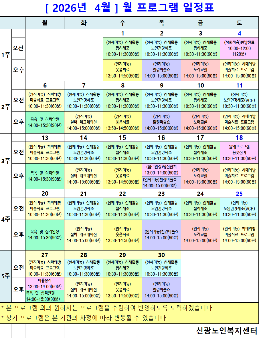 2026³â 4¿ù ÇÁ·Î±×·¥ ÀÏÁ¤Ç¥